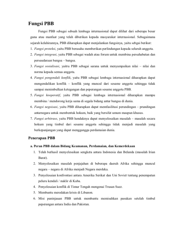 Hal ini selaras dengan tujuan PBB yang ingin menjaga perdamaian dan keamanan Internasional. 2019-07-29 PBB Perserikatan Bangsa-Bangsa PBB Perserikatan Bangsa-Bangsa merupakan organisasi yang anggotanya adalah negara-negara di seluruh dunia. 2020-03-18 Itu karena PBB meliputi semua negara di dunia baik yang merupakan anggota maupun bukan.