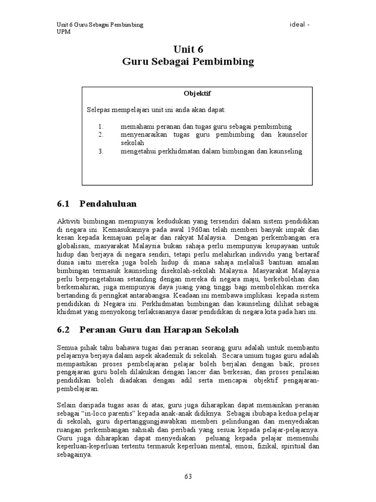 34 Memberi khidmat nasihat dan bimbingan kepada guru di institusi persekitaran yang memerlukan kepakarannya. Peranan Sekolah Dan Guru Dalam Pembangunan Nilai Pelajar Menerusi Pen. 14052018 Dalam konteks ini kompentensi guru kaunseling adalah terbatas kerana peranan pendidik bukan mengubah murid tetapi membantu golongan itu untuk bertanggungjawab terhadap diri sendiri.