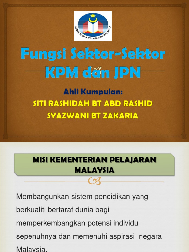 JPIPT pula terdiri dari dua sektor pengurusan iaitu Sektor Pengurusan IPTA. Fechar sugestes Pesquisar Pesquisar. PERANAN KEMENTERIAN PELAJARAN MALAYSIA KPM SEKTOR OPERASI PENDIDIKAN SOP 61 Menyediakan panduan pelaksanaan MMI yang jelas kepada Bahagian JPN PPD dan sekolah.